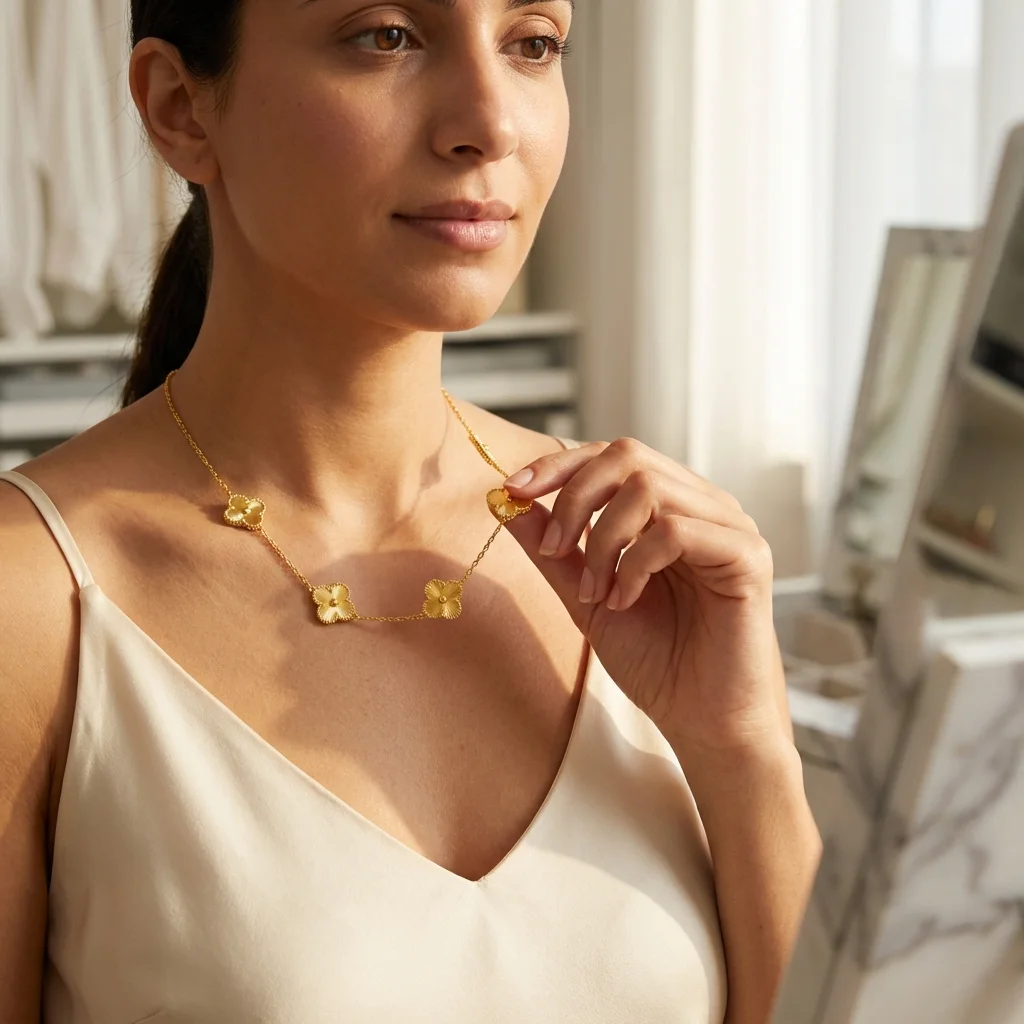 تتميز بتصميم فاخر مستوحى من رموز فان كليف الأنيقة، ما يضفي لمسة راقية وعصرية لإطلالتك اليومية والمناسبات الخاصة.